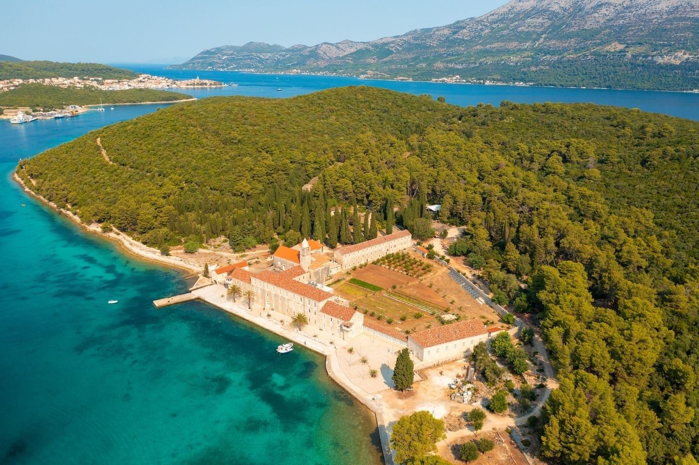 The Island of Badija, located in the Adriatic Sea off the coast of Croatia, is a serene and picturesque destination known for its lush pine forests, charming pebble beaches, and the historic 15th-century Franciscan monastery at its heart - your home for 6 nights. The monastery is a perfect place for a retreat. Badija's clear turquoise waters are perfect for swimming and snorkeling, while its walking trails offer leisurely strolls amidst nature. The island is also home to friendly deer, adding to its unique charm. At night, the only inhabitants are those staying at the monastery, enhancing the island's tranquil and secluded atmosphere, making it an ideal retreat for pilgrims.