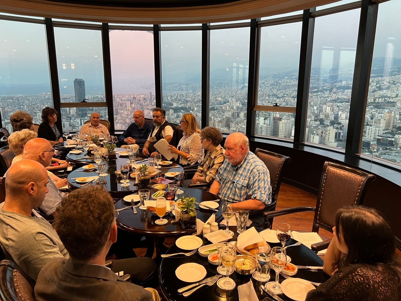 Tonight, we gather for dinner on the 32nd floor of the Hilton, with sweeping views over Beirut and the Mediterranean Sea.